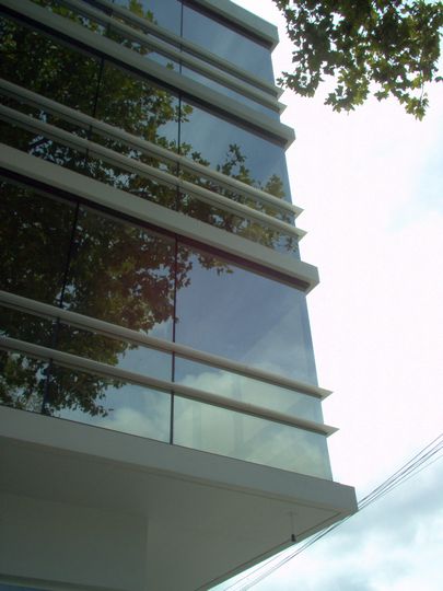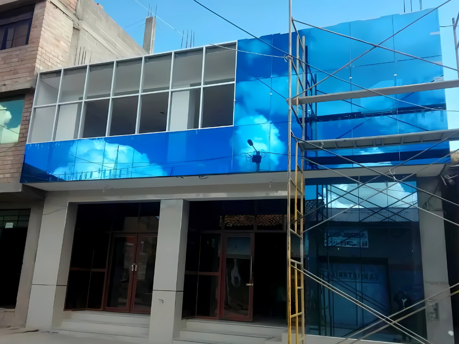 Vidrios estructurales sin perfilería frontal visible. Estética liviana, continua y de alto impacto visual.