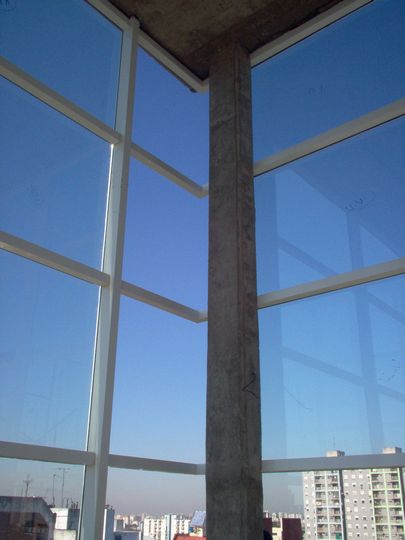 Sistema de carpintería continua en aluminio y vidrio. Diseño limpio, con una estructura fuerte y estética moderna de vanguardia.